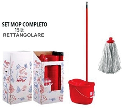 Completo di manico metallo cm.120, mop gr.150 e secchio da lt.15.